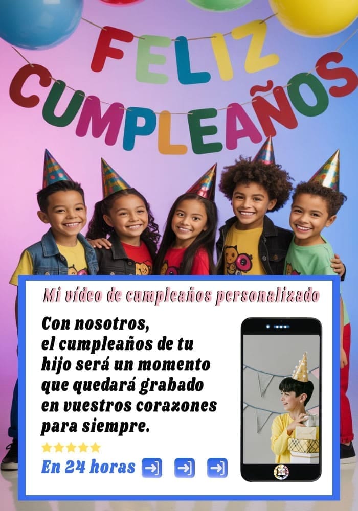 Cuando nos hagas un pedido, esto es todo lo que recibirás para el cumpleaños de tu hijo. Tras 24 horas en nuestro estudio de producción, te enviaremos el contenido en calidad 4K por correo electrónico o WhatsApp.